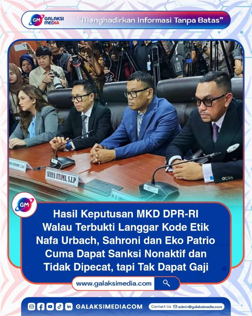 Hasil Keputusan Mahkamah Kehormatan Dewan (MKD) menyatakan Nafa Urbach dari Fraksi Partai NasDem, Ahmad Sahroni dari Fraksi Partai NasDem, dan Eko Hendro Purnomo alias Eko Patrio dari Fraksi PAN terbukti melanggar kode etik sebagai anggota DPR. Namun, ketiganya hanya mendapat sanksi berupa penonaktifan selama beberapa bulan dan tidak dipecat sebagai anggota DPR.